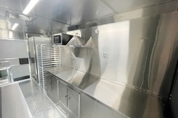 "The Pie Shoppe" boasts a design that mirrors the quaint charm of Laughlintown, showcasing unique food truck design ideas that seamlessly blend aesthetics with functionality. The exterior stands as an invitation, urging locals to step inside a mobile kitchen equipped with top-rated mobile kitchen equipment, ensuring that every pizza pie is a celebration of culinary excellence.